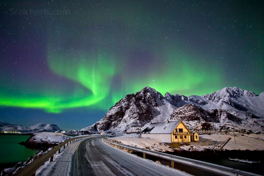 Hier ist wenig störendes künstliches Licht und die Berg- und Küstenlandschaft bildet eine phantastische Kulisse für eure Nordlicht-Bilder.